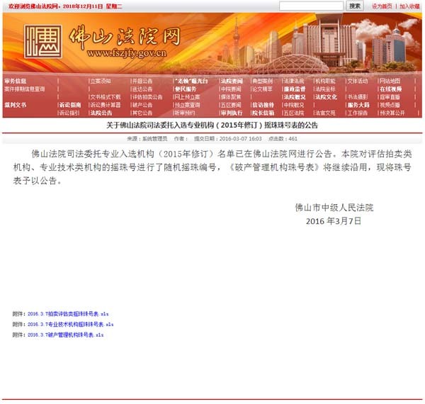 佛山法院司法委托入選專(zhuān)業(yè)機(jī)構(gòu)(2015年修訂)名單截圖(部分)