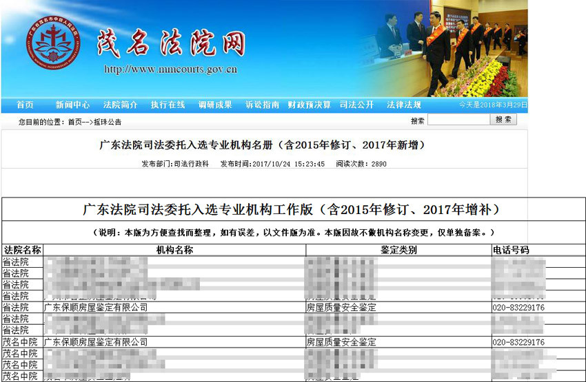按照粵高法[2015]114號(hào)《廣東法院司法委托入選專(zhuān)業(yè)機(jī)構(gòu)(2015年修訂)的基本條件》,經(jīng)過(guò)法院審查核實(shí),我司順利入選“茂名中級(jí)法院”司法委托專(zhuān)業(yè)機(jī)構(gòu)名錄。