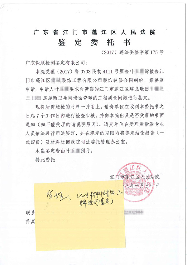 委托單位:廣東省江門市蓬江區(qū)人民法院