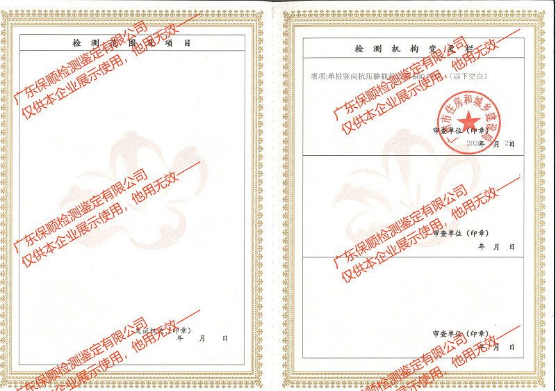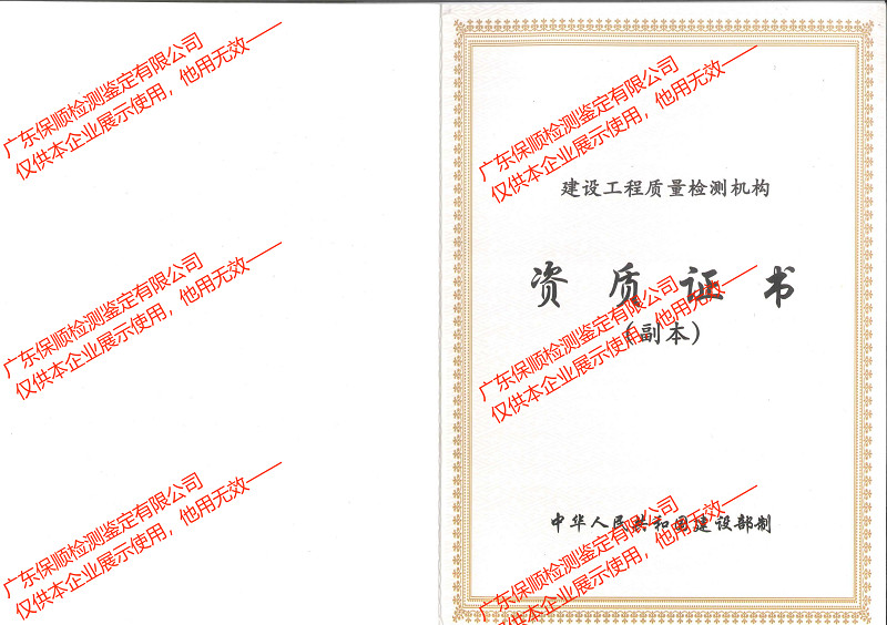 廣東保順檢測(cè)鑒定有限公司《建設(shè)工程質(zhì)量檢測(cè)機(jī)構(gòu)資質(zhì)證書》(證書編號(hào):穗建筑檢證字01023號(hào)),關(guān)于增加檢測(cè)項(xiàng)目的公告。