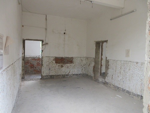 該房屋外墻飾面為涂料;內墻飾面為混合砂漿抹灰飾面;天花為混合砂漿抹灰飾面;室內地面為鋪貼地板磚、水泥砂漿找平層;門為玻璃門,窗為鋁合金窗,其中部分門窗已拆除。該房屋屋面形式為不上人屋面。該房屋曾作為辦公樓用途使用,現已空置。據悉該房屋建于1983年,該房屋內景如下照片所示